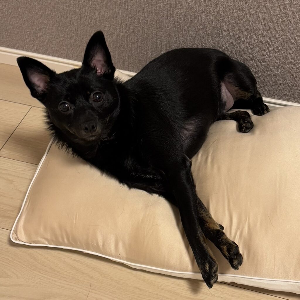 | 特徴 | 大きな瞳と立ち耳が印象的。ピンシャーの影響ですっきりした体型。自分専用のクッションでくつろぐのがお気に入り |